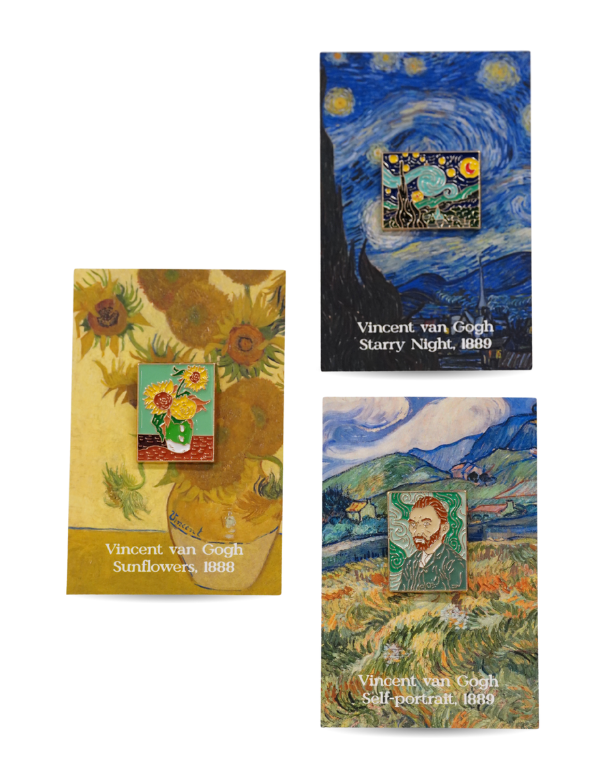 This pin showcases Vincent van Gogh’s renowned Self-Portrait (1889), capturing the depth and intensity of his artistry in a miniature form.